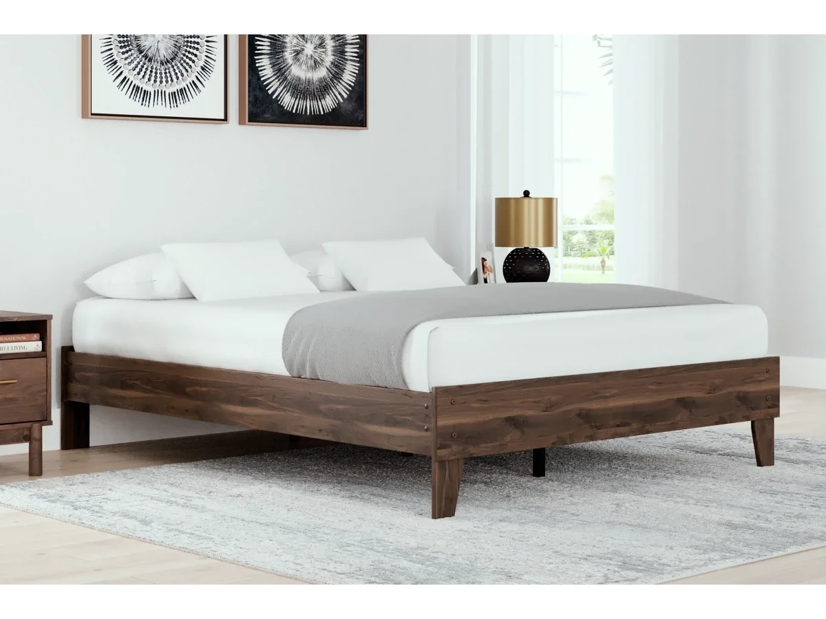 At the intersection of classic cool and chic sophistication you’ll find the Calverson queen panel platform bed. The rich brown finish over replicated walnut wood grain offers an authentic touch that plays well any way you style it. Minimal yet elegant in its design, this bed keeps your home decor grounded while elevating your modern style.