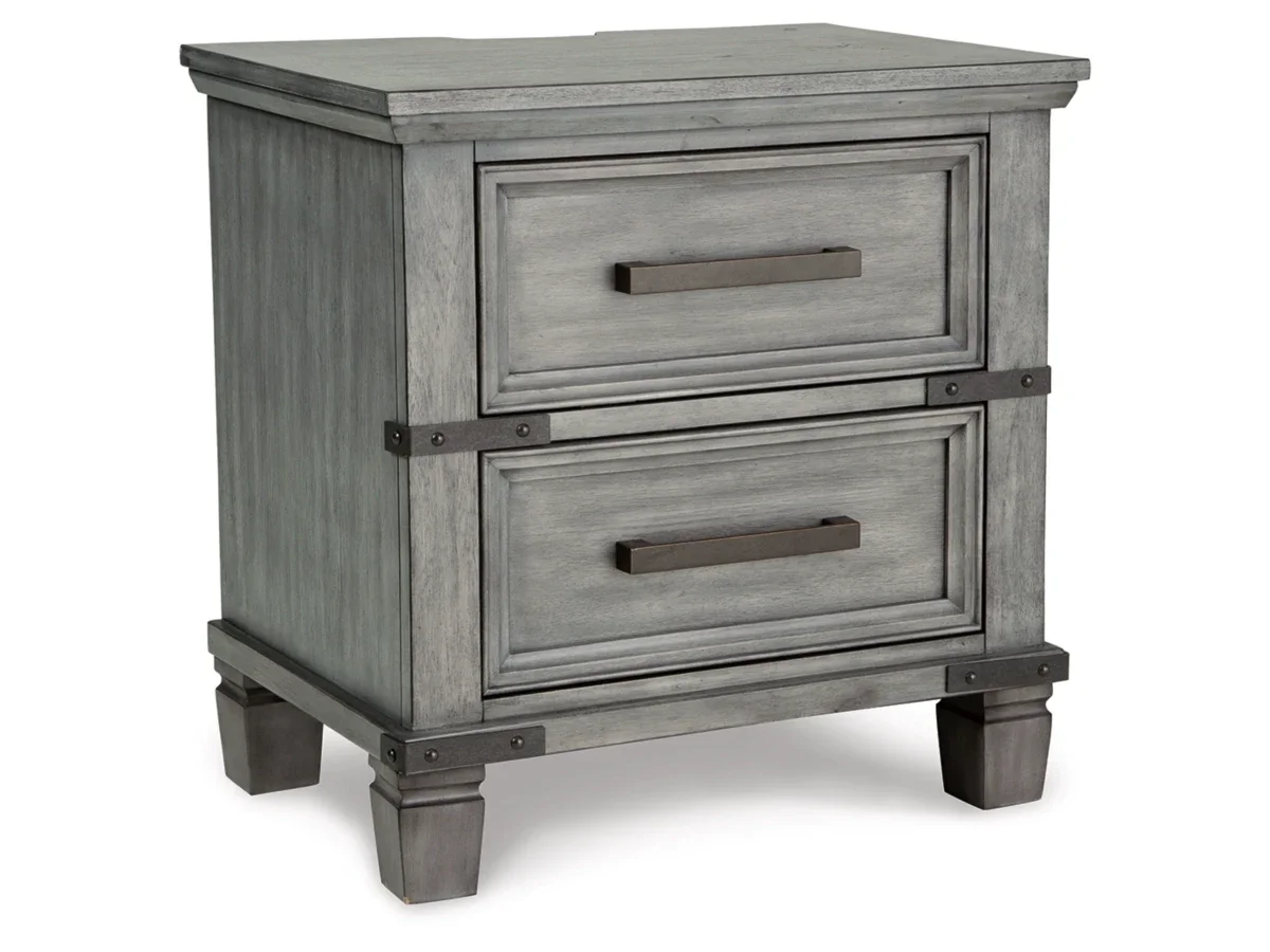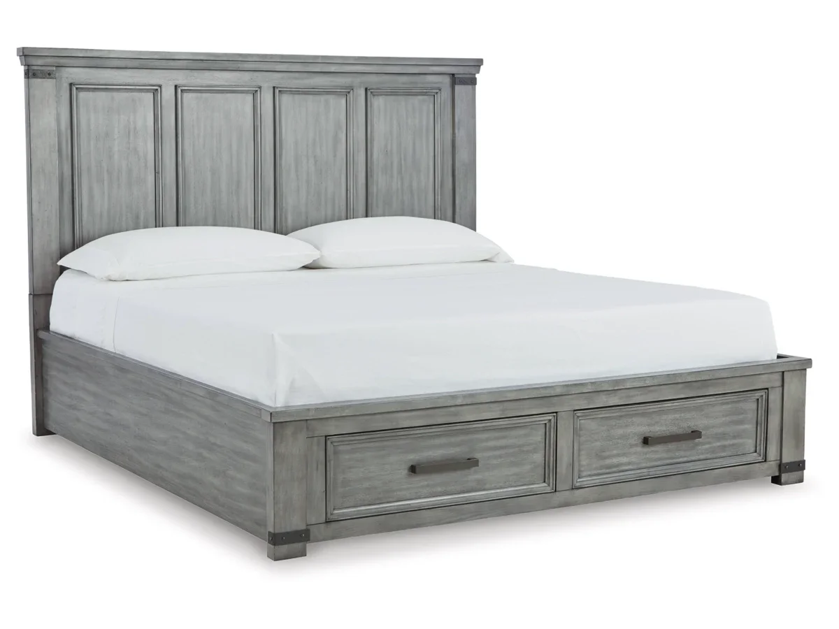 What's old is what's new with the Russelyn bedroom package. Serving up a fresh look in urban farmhouse style, this set features a light weathered gray finish with dark aged bronze-tone bar pulls and metal straps for a casually cool sensibility. Profiled frames and thick-profiled top molding are the earmarks of timeless design.